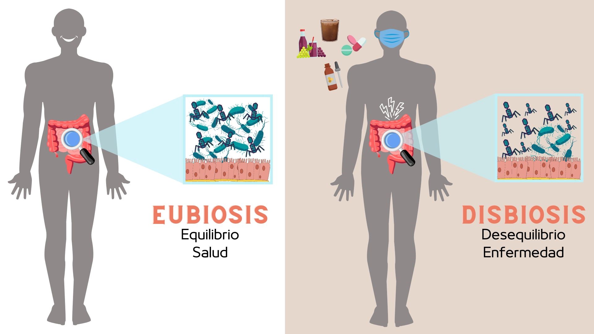 Con el gran avance de las tecnologías, la identificación del fagoma (es decir, la comunidad total de bacteriófagos presentes) en el intestino se ha vuelto posible, tanto que se logrado estimar que la cantidad de fagos va incrementándose del intestino delgado al intestino grueso. Asimismo, se ha encontrado que los hábitos alimenticios modulan el fagoma; por ejemplo, en adultos una dieta alta en fibra está asociada con el incremento de fagos en el sistema (Minot et al., 2011). Pero ¿cómo pueden afectar los fagos mi salud?
